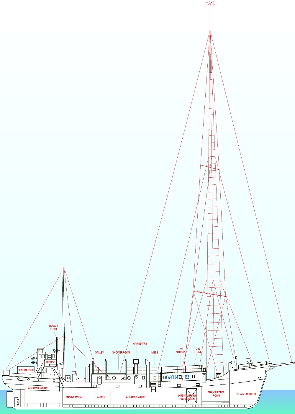 four sided mast, until the Mi Amigo's demise. Although less elegant than